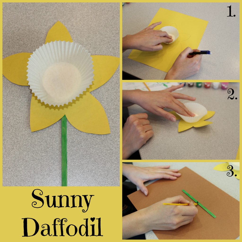 - Glue the Popsicle stick onto the back of the daffodil. And now you have a lovely flower!