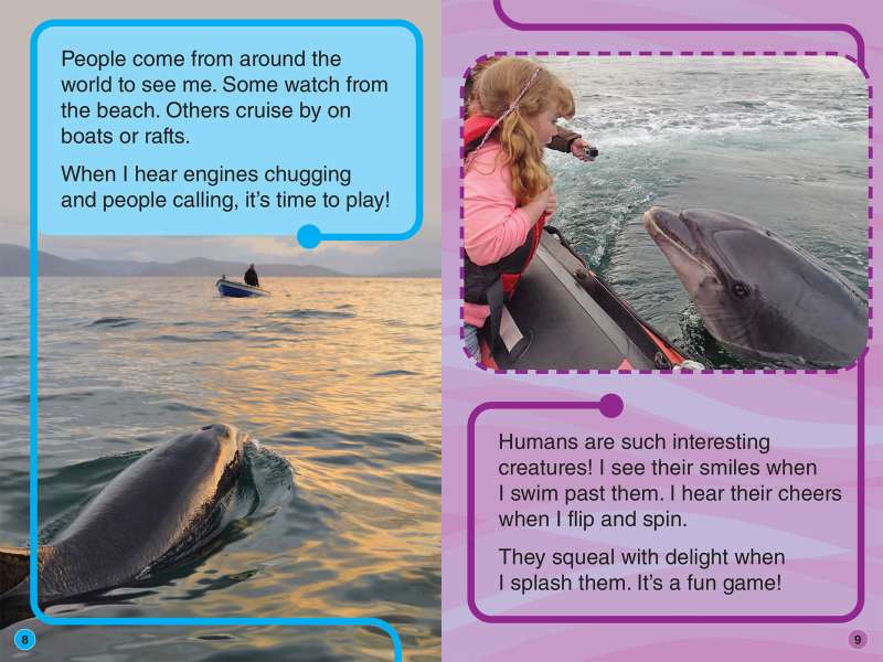 Dolphins usually live and interact with other dolphins, but one dolphin—affectionately named Fungie by locals—lived by himself in a harbor in the town of Dingle, Ireland, for more than 30 years. Fungie’s life story is told from his point of view in Animal Planet All-Star Readers: I Am Fungie the Dolphin, a Level 2 reader full of photographs and including a glossary. Dolphin-loving kids will eagerly plunge into this unique story that will also help them build their literacy skills.