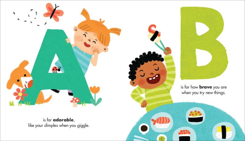 A is for adorable, like your dimples when you giggle.