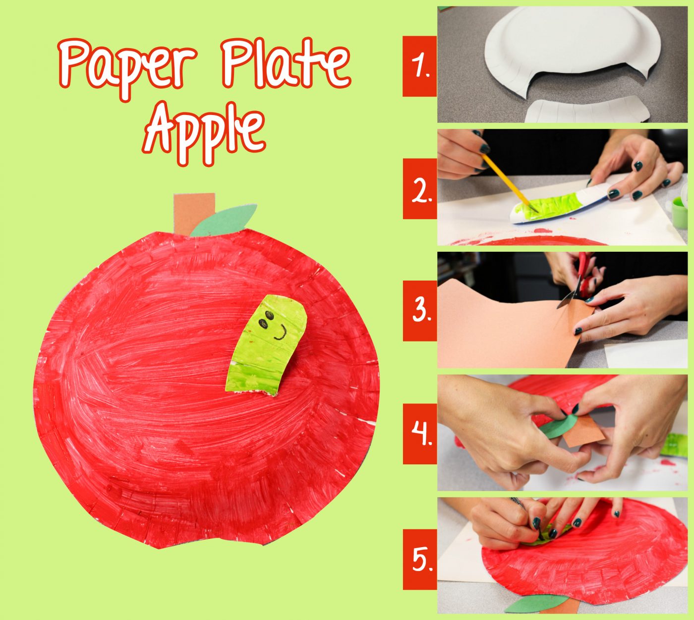- Paint your larger paper plate red. Paint the worm green. Set them aside to dry!