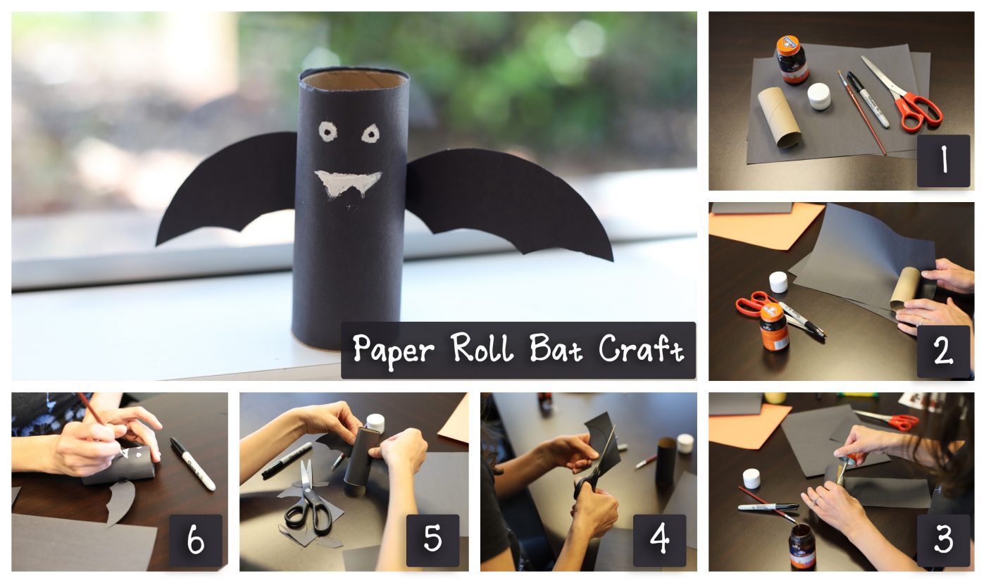 - Download and print out a bat template. Fold it in half, then cut it out. Using a pencil, trace the bat shape onto a piece of black construction paper then cut it out. (Have an adult help with the cutting.)