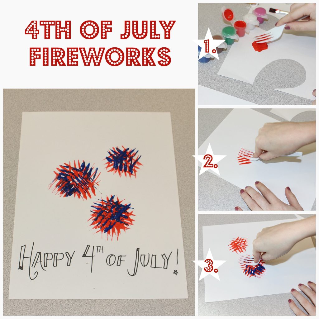 - Gently press the painted fork into fanning patterns on the page to begin your fireworks.