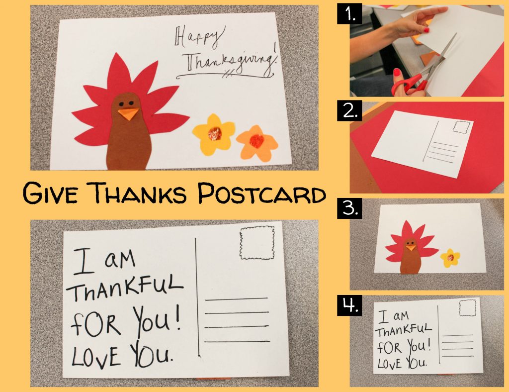 - Draw on lines for address, stamp, and one down the middle so you can write a special Thanksgiving message.