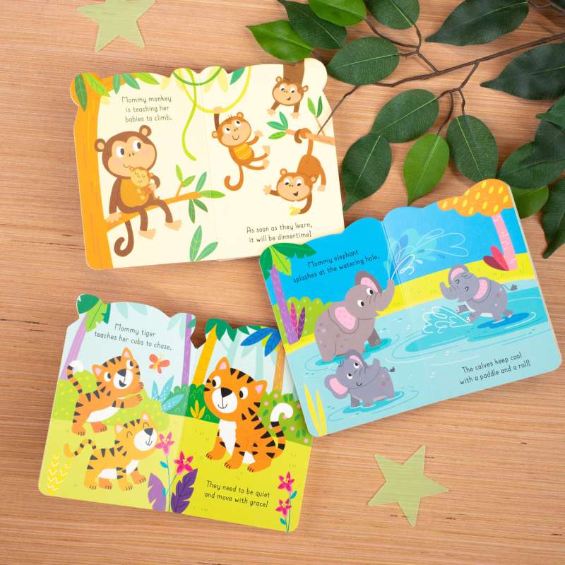 Head out into the wild and meet some new animal friends! Each of the three adorable board books in this pack tells a story of a wild animal friend (Elephant, Monkey, and Tiger) and their adventures. With fun rhyming text and cute illustrations, little ones will fall in love with the wild!