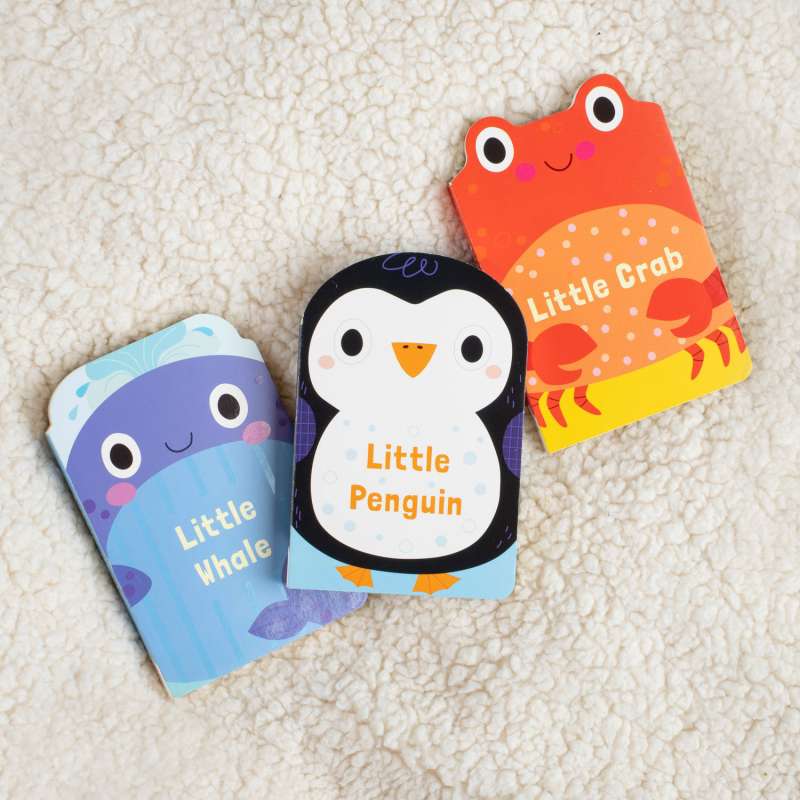 Dive into the ocean and meet some new undersea friends! Each of the three adorable board books in this pack tells a story of an ocean friend (Crab, Penguin, and Whale) and their adventures. With fun rhyming text and cute illustrations, these books will inspire little ones to fall in love with the ocean!