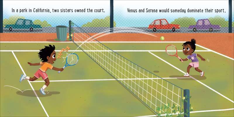 Before they were serving up grand slam victories, Venus and Serena Williams were just two sisters growing up in Compton, California. Follow along as they go from learning tennis with their dad to winning Wimbledon! Introduce little ones to the lives of two true game changers in this inspiring board book perfect for baby ballers!