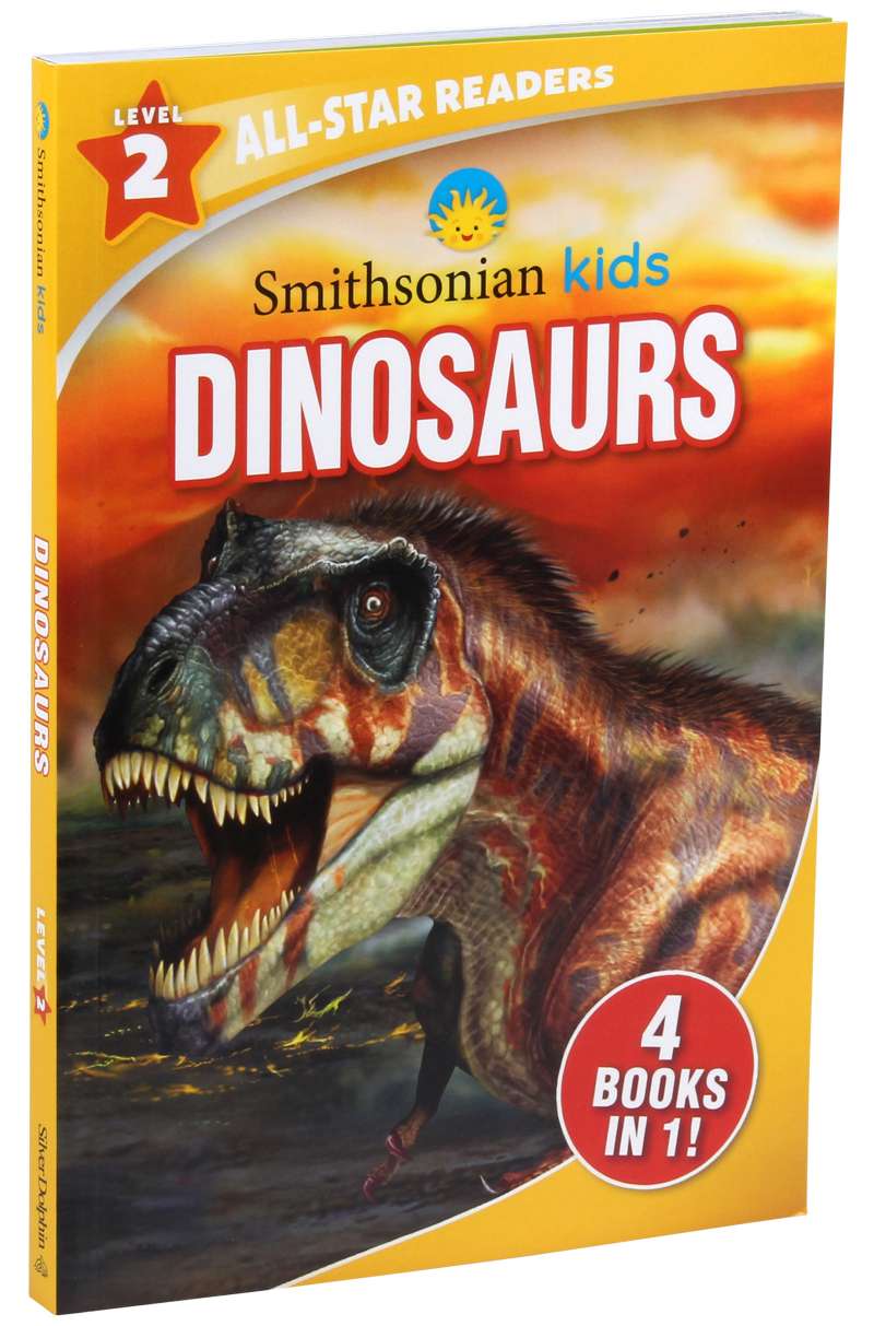 Roar with the dinosaurs and learn to read with the Smithsonian! Smithsonian Kids All-Star Readers: Dinosaurs Level 2 includes four dinosaur readers that cover everything from T. rex to fossils. Developed with esteemed childhood literacy expert Dr. Adria Klein, this collection is designed to encourage reading comprehension through simple factual texts, new phonic structures, familiar vocabulary, and more. Colorful illustrations on each page of this level 2 reader enhance the text. After finishing each reader, children can use the quizzes and glossaries to reinforce reading comprehension.
