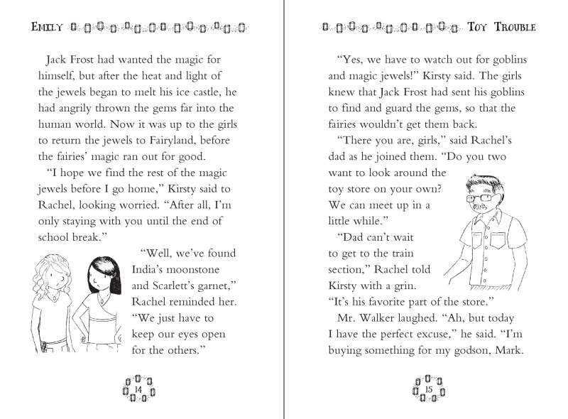 One day, best friends Kirsty and Rachel head to the Tippington Toy Store where they see flashes of the future in a mirror and in a puddle of bubbles. They know that means Emily the Emerald Fairy’s missing jewel is nearby! Emily is in charge of seeing magic, which allows her to see the future. But without her jewel, Emily is unable to see what will happen next. Kirsty and Rachel have already helped India the Moonstone Fairy and Scarlett the Garnet Fairy get their jewels back—now they must help Emily the Emerald Fairy find her magic jewel before it’s too late! With age-appropriate text, a magical story, and illustrations throughout, this chapter book is perfect for kids who are starting to read independently.