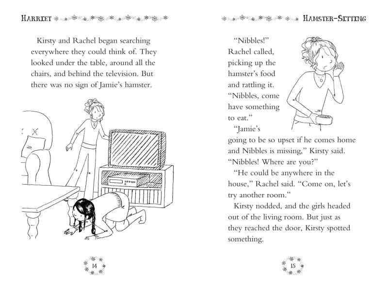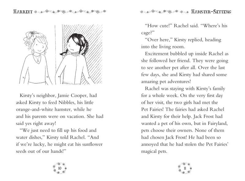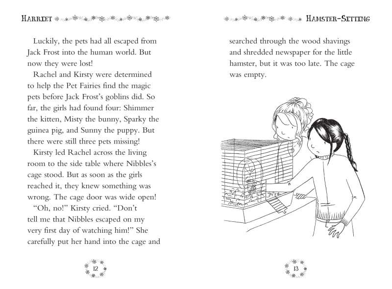 Fairyland’s magical pets help pets in the human world find good homes, but Jack Frost has stolen the fairies’ pets! The magical pets have escaped Jack Frost’s castle and are now lost in the human world. So far, friends Kirsty and Rachel have helped rescue Katie the Kitten Fairy’s kitten, Shimmer, Bella the Bunny Fairy’s bunny, Bella, Georgia the Guinea Pig Fairy’s guinea pig, Sparky, and Lauren the Puppy Fairy’s puppy, Sunny. Now the friends need to help Harriet the Hamster Fairy find her hamster, Twinkle, before Jack Frost’s goblins do. Full of illustrations and accessible text, this fifth title in the Rainbow Magic Pet Fairies series is perfect for kids starting to read chapter books independently.