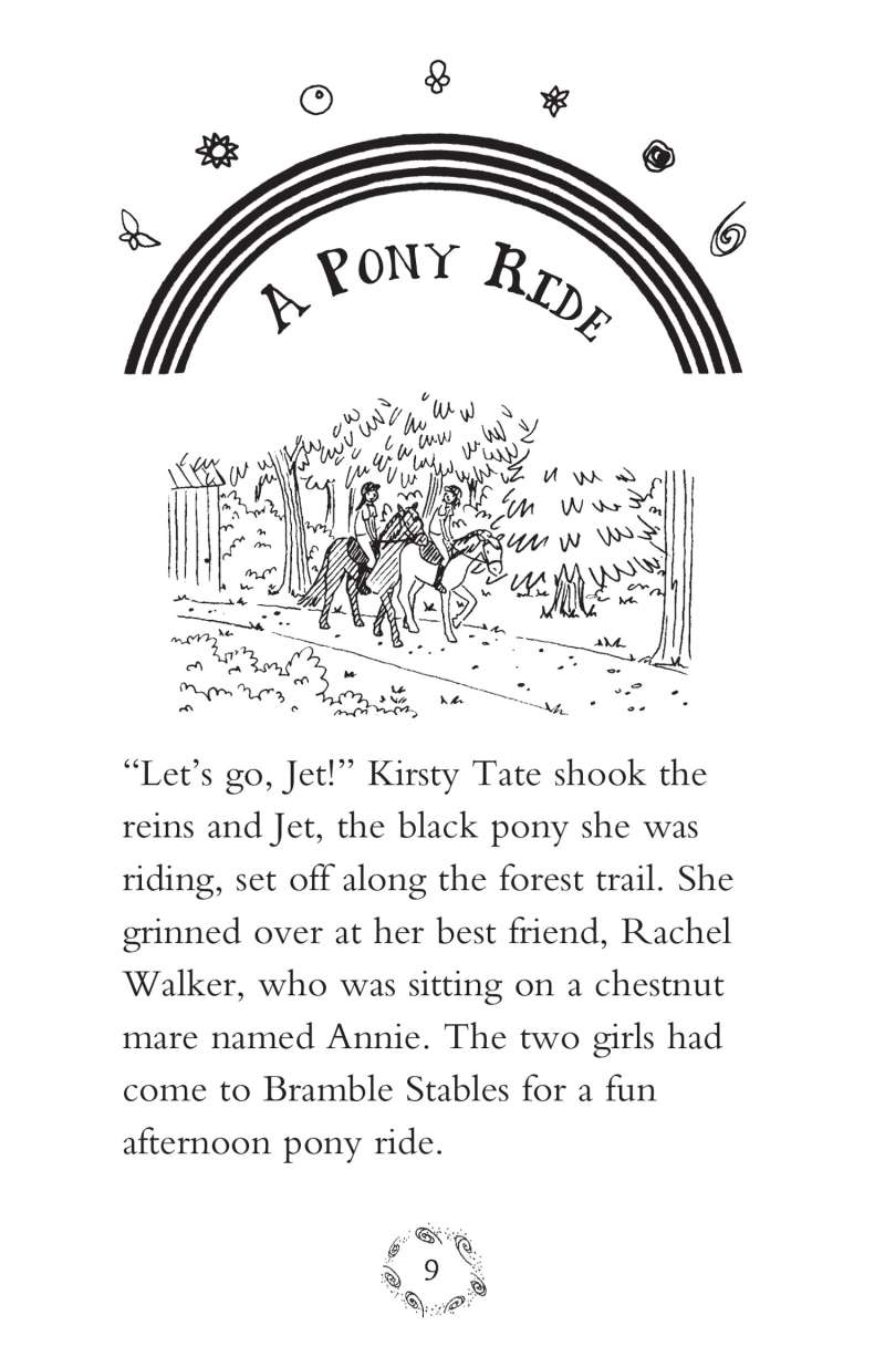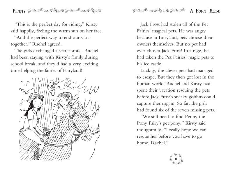 Jack Frost wants a pet of his own so badly that he has stolen the Pet Fairies’ magical pets! But the pets have escaped Jack Frost’s castle and are now lost in the human world. Friends Kirsty and Rachel have already rescued six of the Pet Fairies’ magical pets (Shimmer, Bella, Sparky, Sunny, Twinkle, and Flash). Now the friends need to help rescue the final magical pet, Penny the Pony Fairy’s pony, Glitter, before Jack Frost’s goblins do. Full of illustrations and accessible text, this seventh and final book in the Rainbow Magic Pet Fairies series is perfect for kids starting to read chapter books independently.