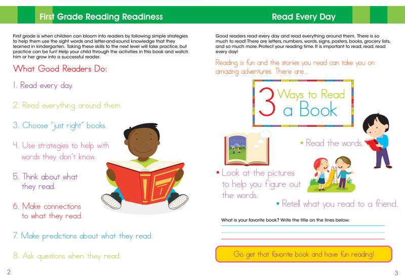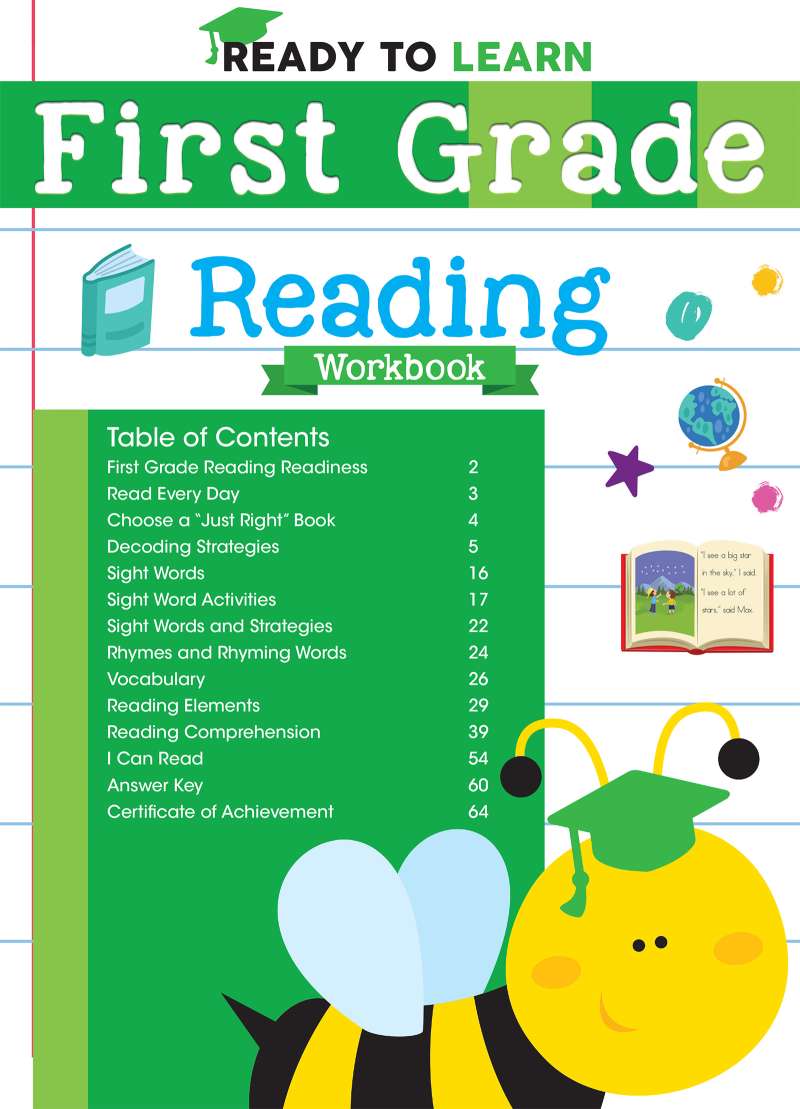 Lifelong reading skills and habits can develop in the first grade. Ready to Learn: First Grade Reading Workbook provides students ages 5 to 7 with the tools and skills they need to take their reading to the next level. Accompanied by bright and colorful illustrations, the activities in this workbook explain concepts like sight words, rhyming words, and reading comprehension. Ready to Learn: First Grade Reading Workbook will help kids become stronger, more eager readers.