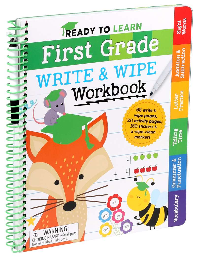The Ready to Learn: First Grade Write and Wipe Workbook helps kids ages 5 to 7 build the foundation to keep up and thrive in first grade. Reading, writing, and math are the topics covered in this reusable book that allows kids to complete activities as often as they like—students can simply use the included erasable marker, wipe the page clean, and do it all over again. Repeating the reading comprehension, writing exercises, and math skills in Ready to Learn: First Grade Write and Wipe Workbook is a great way to get ready for first grade, get some extra practice during the school year, or prepare for the move to second grade.
