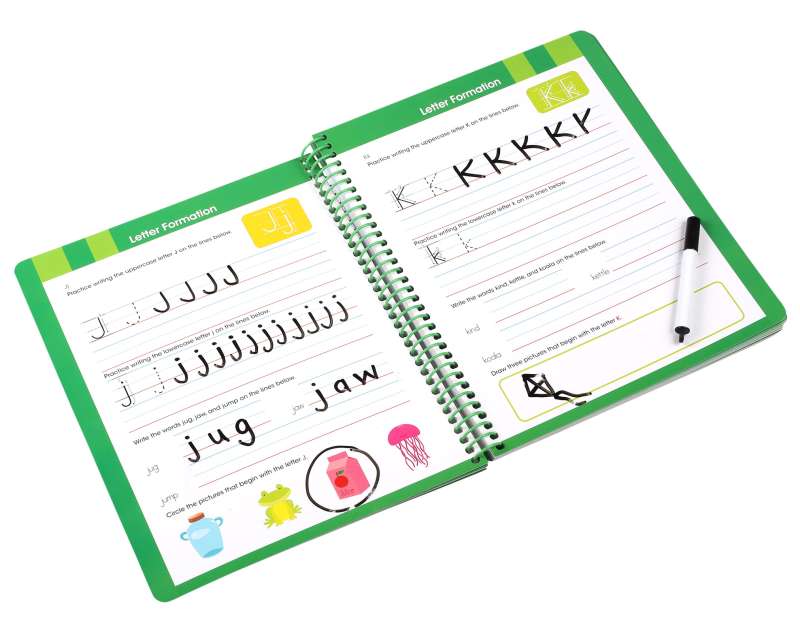 • Write-and-wipe format allows for skill reinforcement.
