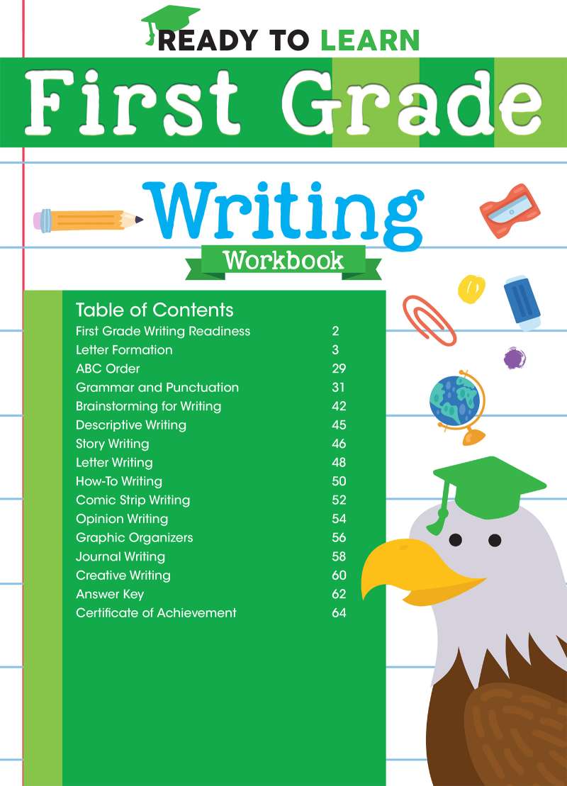 Building on the writing skills developed in pre-k and kindergarten, the Ready to Learn: First Grade Writing Workbook takes first-graders (ages 5 to 7) to a whole new level in their ability to compose many types of written works: fiction, journals, and even comic strips. Paired with colorful illustrations, the educational activities cover basic elements of writing, including brainstorming, storytelling techniques, grammar, and proper punctuation. This engaging workbook will encourage kids to hone their grammar and punctuation skills and enjoy the creative outlets of their newfound writing abilities.