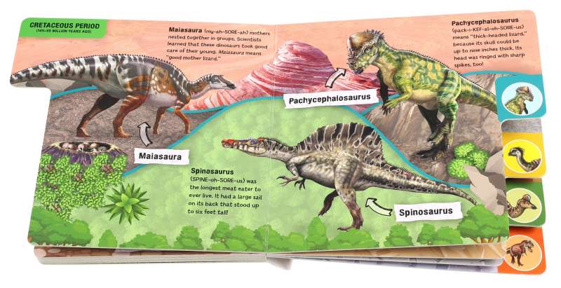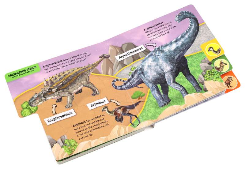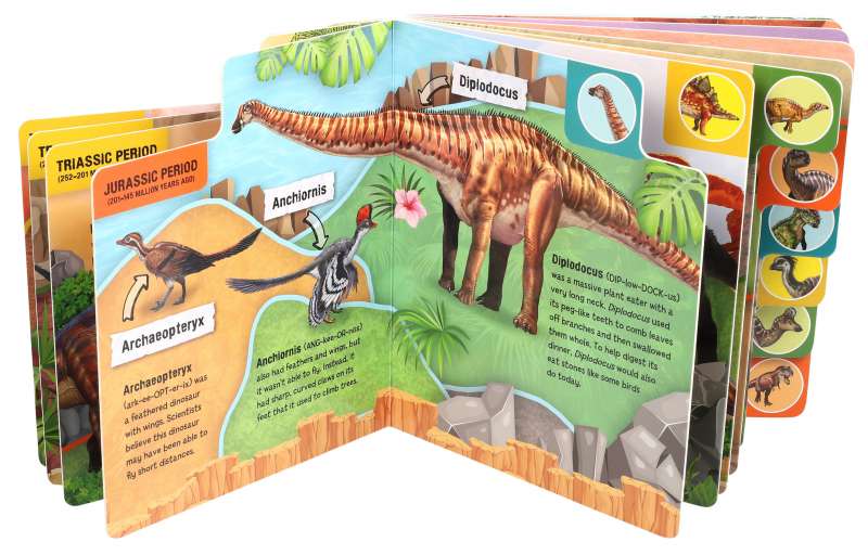 Dive into the prehistoric world with Tyrannosaurus rex, Plateosaurus, Stegosaurus, and more of the coolest dinosaurs that ever lived! Smithsonian: My First Book of Dinosaurs features 30 different dinosaurs and includes fascinating facts about when they lived, what they ate, and much more! The simple text and accompanying striking images of dinosaurs in action, along with tabs perfectly sized for little hands, will delight preschoolers for hours!