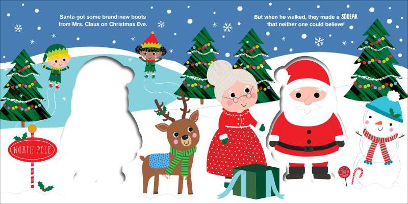Santa's got a brand-new pair of boots from Mrs. Claus. But with every step he takes, they let out a loud squeak—making his very important job of delivering presents to sleeping kids a little tricky! Toddlers will enjoy giving Santa a squeeze and hearing his squeaky boots as he delivers presents around the world on Christmas Eve in this fun, illustrated board book.
