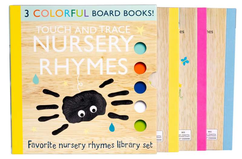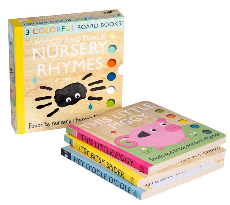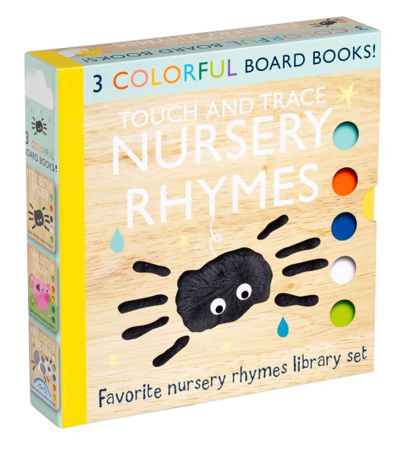 Read your favorite nursery rhymes with your little one with this board book slipcase! Featuring the beloved Touch and Trace Nursery Rhyme books Itsy Bitsy Spider, Hey Diddle Diddle, and This Little Piggy, each book contains five classic nursery rhymes, adorable illustrations, and printed shapes for little hands to touch and trace. This Touch and Trace Nursery Rhymes book set is the perfect gift that can be enjoyed the whole year through.