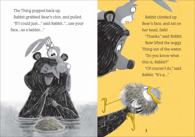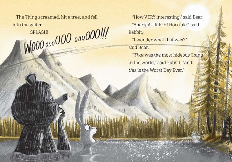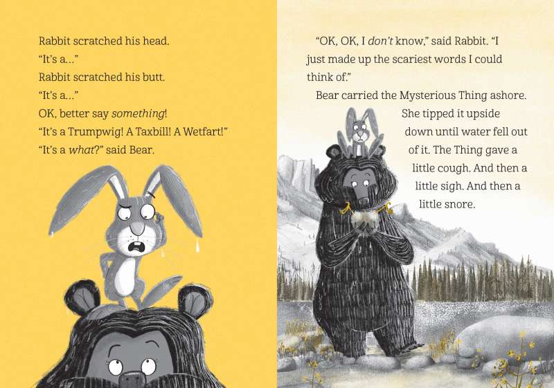 SPLASH! A Mysterious Thing lands in Rabbit and Bear’s peaceful summer lake. Is it exciting or terrifying? Is it a tiny, fluffy owl or a huge, hungry monster? And has Rabbit finally met a creature with worse habits than himself? Rabbit’s sure he can solve this mystery. But when he accidentally turns the Best Day Ever into the Worst Day Ever, he needs Bear’s help…