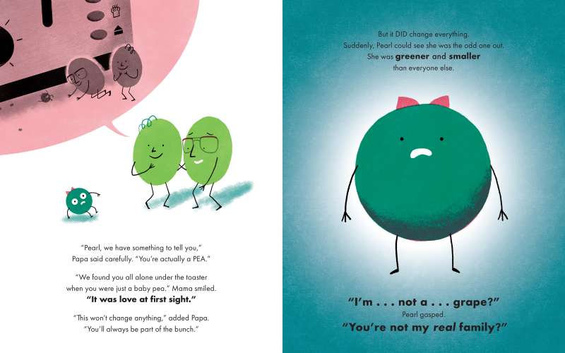 Pearl loves her family! But one day, she discovers that she’s not a grape like the rest of her bunch and she begins questioning everything! Pearl and Her Bunch is a clever and sweet picture book that takes readers on an adventure around the house with Pearl with her fruit and veggie friends as she searches for what makes a family, a family. This heartfelt picture book celebrates family diversity, different family structures, chosen families, and more. With bold, bright art by author/illustrator Momoko Abe, this picture book and the adorable protagonist Pearl are sure to delight children and parents alike.