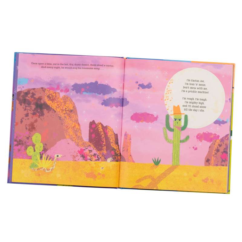 All alone in the hot, dusty desert lives Cactus Joe, who sings his lonesome song each night and prefers being by himself. Then one day, a woodpecker arrives and offers to eat the insects off Cactus Joe in return for a place to stay. Sooner than Cactus Joe can say “prickle machine,” more visitors arrive, and Cactus Joe has had enough! The Ballad of Cactus Joe is a heartwarming picture book featuring a prickly, but beloved, saguaro cactus and his journey to decide if a solitary life is for him or if there is room in his heart for company. Featuring lyrics to Cactus Joe’s ballad paired with bright striking art, this heartwarming tale is sure to become a storytime favorite, and kids will be requesting Cactus Joe’s lonesome ballad time and time again!