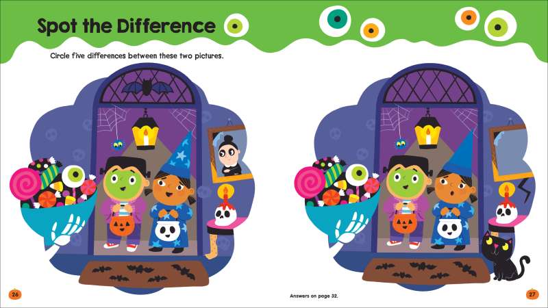 No tricks, just treats in this fun Halloween activity book! Turn the pages and make your way through monster mazes, daring doodles, and silly search and finds. With colorful illustrations, 32 activity pages, and more than 75 puffy stickers, this book is so much fun it’s spooky!