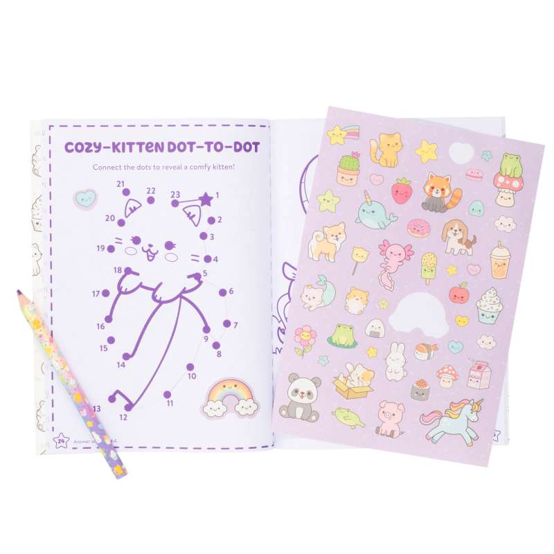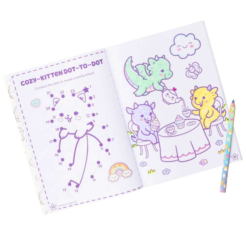 This cute Kawaii-styled coloring book is perfect for creative kids! Kawaii Cuties: Coloring Book with Rainbow Pencil has everything kids could want: cute coloring pages, fun activities, stickers, and a jumbo rainbow-swirl pencil! From coloring a sunbathing hamster to guiding an adorable panda through a bamboo maze, kids will find hours of creative entertainment with this activity book that’s chock-full of the cutest coloring and activities ever! With charming coloring pages, simple and sweet activities, more than 45 stickers, AND a rainbow pencil, this book is full of nonstop coloring fun.