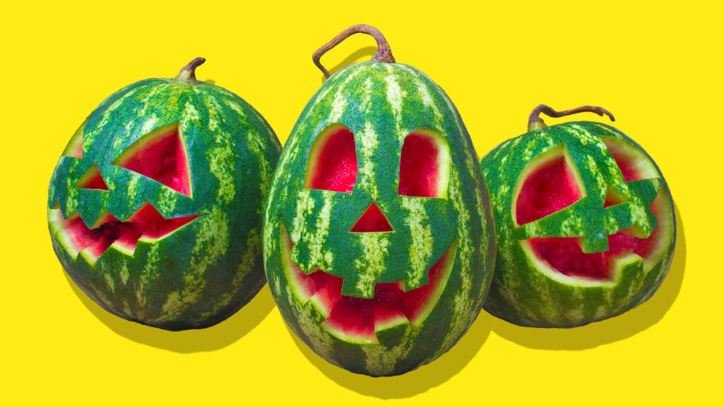 During Summerween, watermelon takes the place of pumpkins for everything from jack-o-lanterns to scarecrow heads. In season and easy to carve, the ruby red fruit inside lends itself to cool summer snacks, like watermelon popsicles, watermelon pizza, fruit skewers and more. If you need help carving, pumpkin templates from Pinterest work just fine.