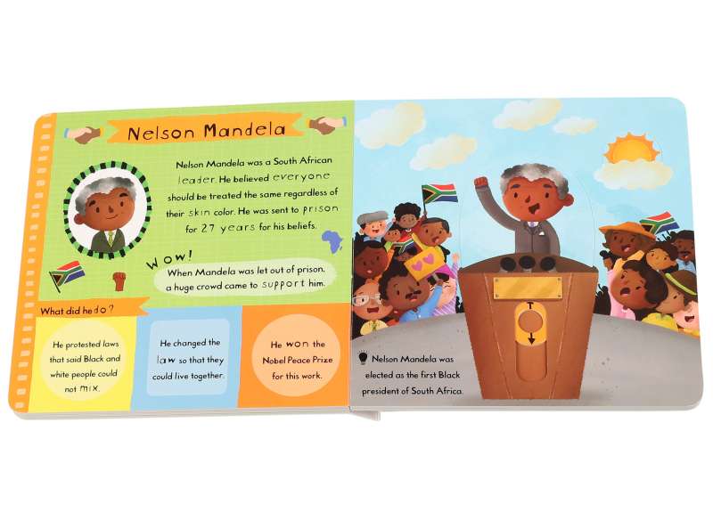 My First Heroes: Black History tells the stories of four incredible Black heroes: Rosa Parks, Nelson Mandela, Maya Angelou, and Serena Williams. Learn about their unique activism and achievements—from changing laws to breaking records—and how their bravery changed the course of history. With adorable illustrations, important facts, and push, pull, and slide elements, this book will delight and educate preschoolers and parents alike.