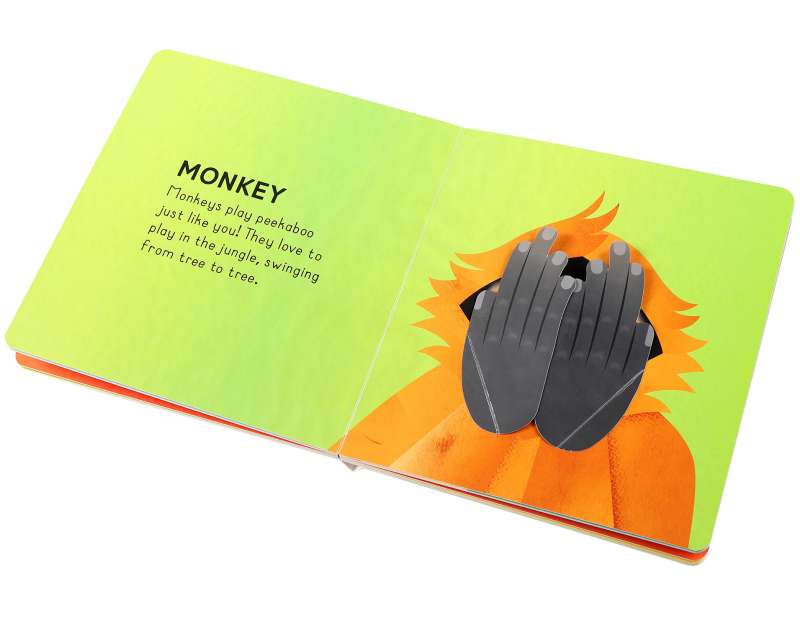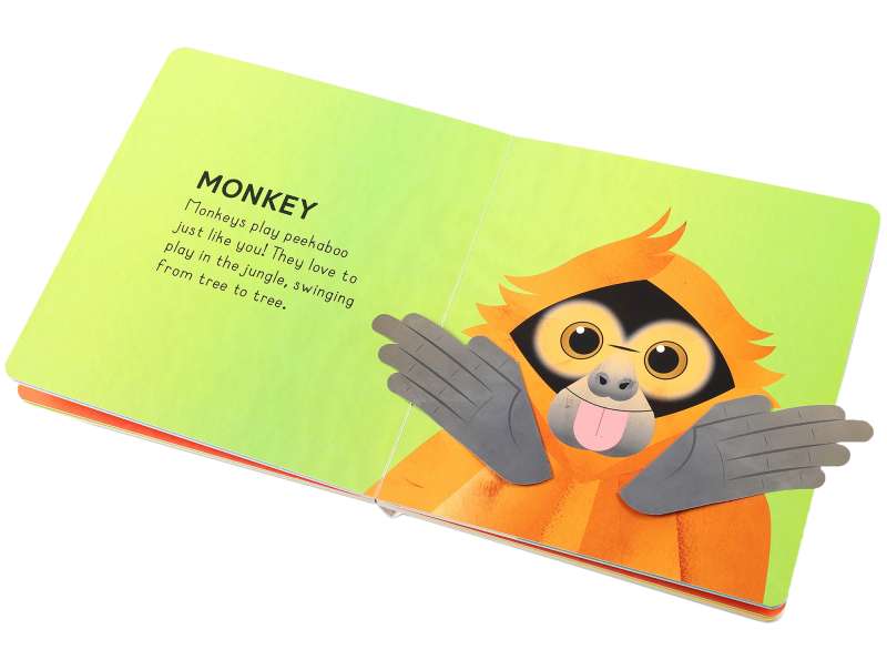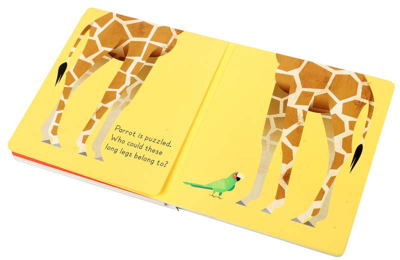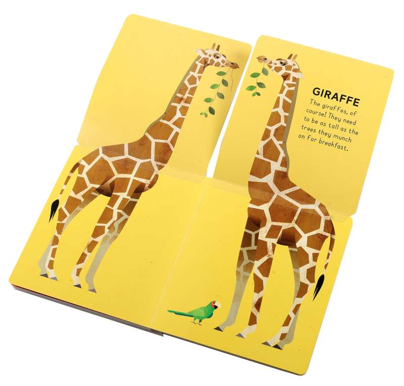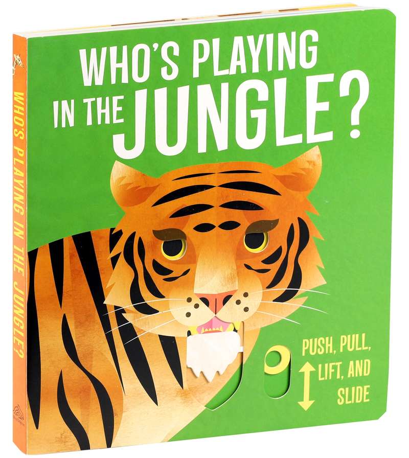 Look past the trees and explore the wilds of the jungle! Play peekaboo with monkeys, watch colorful birds fly, and see giraffes so tall they don’t even fit on the page! Find your favorite wild animal in this fun, interactive board book packed with tabs to lift, foldouts, and a chomping die-cut tiger on the cover!