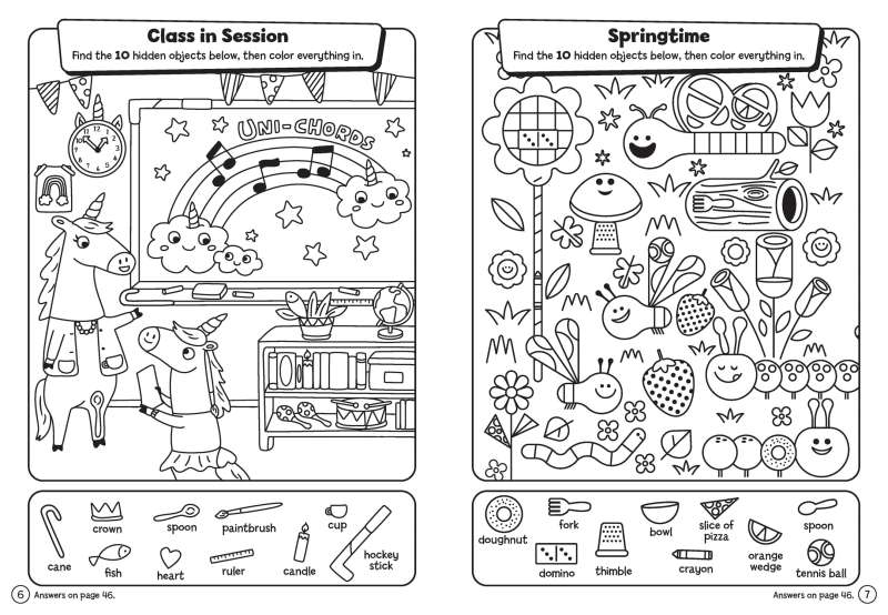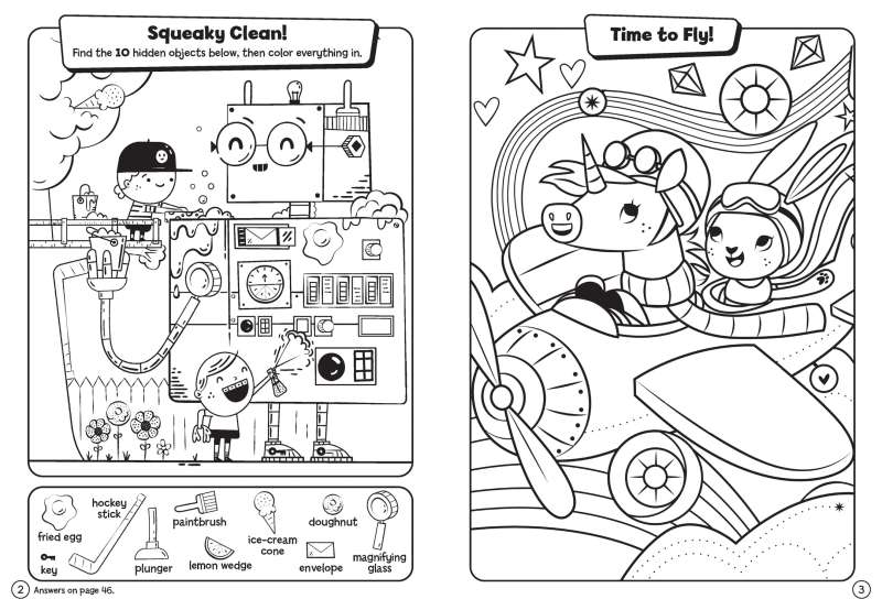 Highlights Hidden Pictures Coloring with Crayons is a great introduction to Hidden Pictures, with tons of super-fun puzzles and hilarious coloring pages. Kids will enjoy coloring silly scenes like a unicorn pilot, an avocado yoga session, a dragon birthday party, and more using the 4 included jumbo crayons and 50+ stickers. This book is the perfect gift for creative kids!