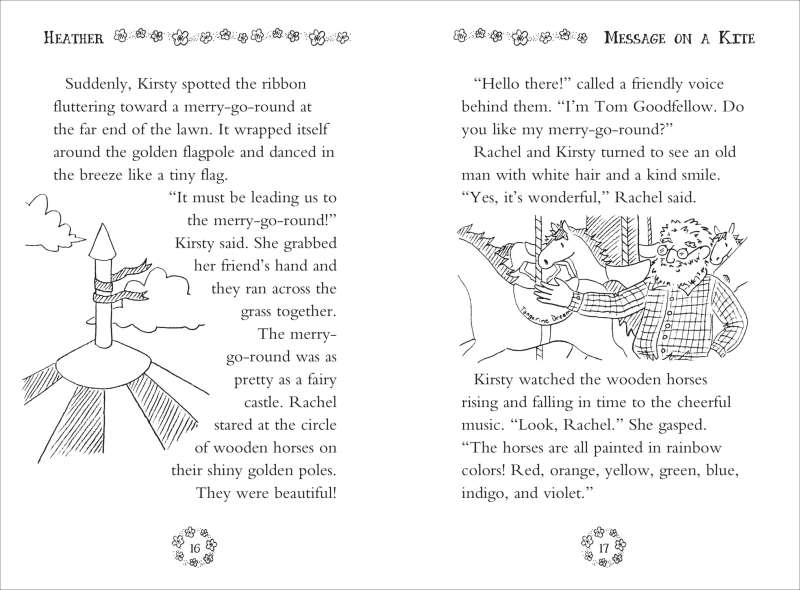 It’s the last day of their vacation on Rainspell Island, and best friends Kirsty and Rachel are determined to rescue the last of the seven Rainbow Fairies, Heather the Violet Fairy, who has been banished from Fairyland thanks to the evil deeds of Jack Frost. The girls discover a magical merry-go-round that sets them on their adventure. Will the pair find Heather in time so that the seven fairy sisters can be reunited and restore color to Fairyland? With age-appropriate text, a magical story, and illustrations throughout, this chapter book is perfect for kids who are starting to read independently.