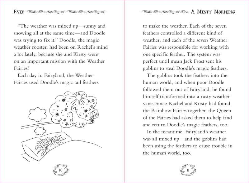 It’s the Fun Run race day in Wetherbury, and it’s so misty and foggy that the runners can’t see where they’re going! Mean Jack Frost and his goblins have stolen the Weather Fairies’ magical feathers that control the weather. Without her feather, Evie the Mist Fairy is unable to clear away the mist and fog. Friends Kirsty and Rachel have helped four Weather Fairies so far—now can they help Evie before it’s too late? Full of illustrations and accessible text, this fifth title in the Rainbow Magic Weather Fairies series is perfect for kids starting to read chapter books independently.
