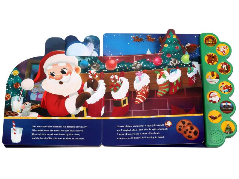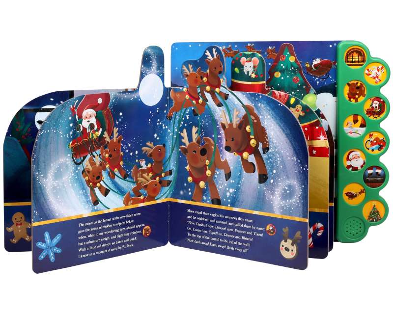 The magic of Clement Clarke Moore’s treasured poem "The Night Before Christmas" comes to life with modern illustrations and prompts to press the 10 holiday sounds as you read along. With thick board book pages and shaped tabs, this Christmas classic will delight young and old for years to come!