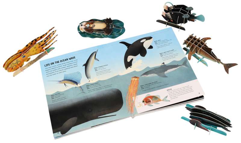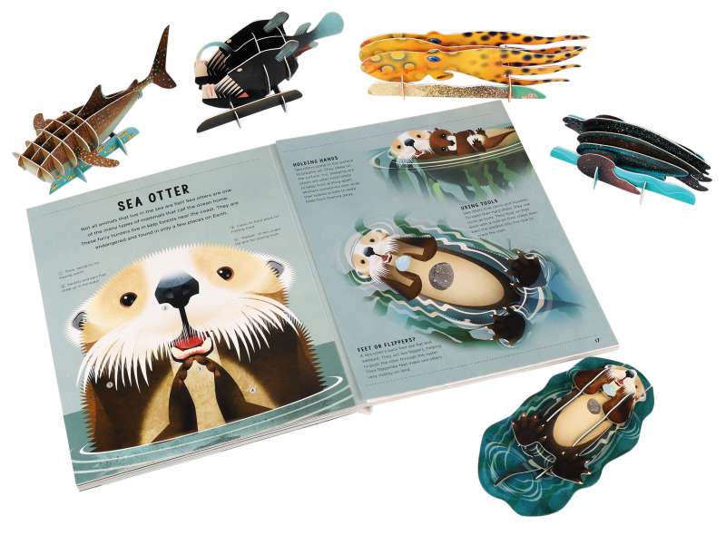 The farther down you go, the colder and darker it gets! In this fun, interactive book, kids will learn about the different layers of the ocean and the many mammals and fish that live in it. They'll read fascinating facts about the mighty whale shark, how the blue-ringed octopus camouflages itself, how sea otters use tools, how anglerfish survive without sunlight, and much more! Then they can follow the simple instructions to assemble five sturdy keepsake models of some of the unique creatures that roam underwater forests or the Great Barrier Reef: a cute sea otter, a leatherback turtle, a whale shark, a deep-sea anglerfish, and a unique blue-ringed octopus. Learning has never been so much fun!