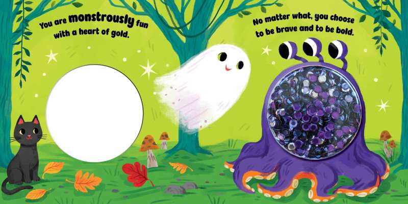Parents and children alike will love the sweet, rhyming story full of adorable Halloween puns in Sweet As Halloween. This board book features an embedded clear plastic window full of sparkly sequins that little ones can shake and move on every page for hands-on story time. Bright illustrations featuring an adorable spider, witch, monster, and more, paired with heartfelt text sprinkled with lovey-dovey puns, are sure to make this festive, interactive book a favorite read for Halloween or anytime!