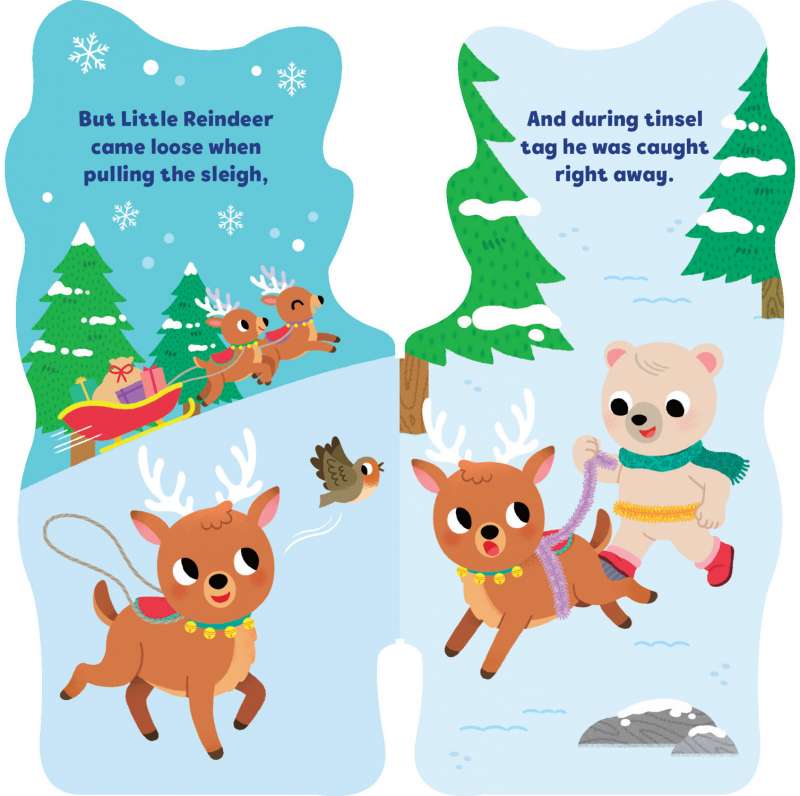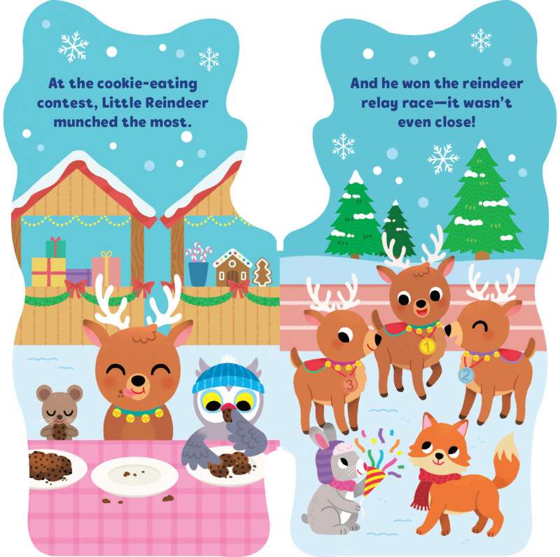 It’s Christmastime, and Little Reindeer can’t wait to play games at the Christmas carnival! Follow Little Reindeer as he plays tinsel tag, pulls a sleigh, and more in this adorable shaped board book with foil and soft flocking on the cover that’s perfect for little hands.