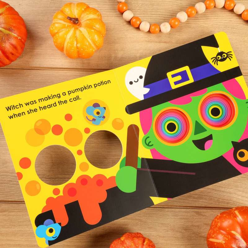 Meet a spooky cast of characters in this Halloween-themed board book that has cut-out eyes all the way through. From Frankenstein's monster, to a cackling witch, and an unlucky black cat, kids will delight as they meet each Halloween character in this simple board book that's great for celebrating the season.