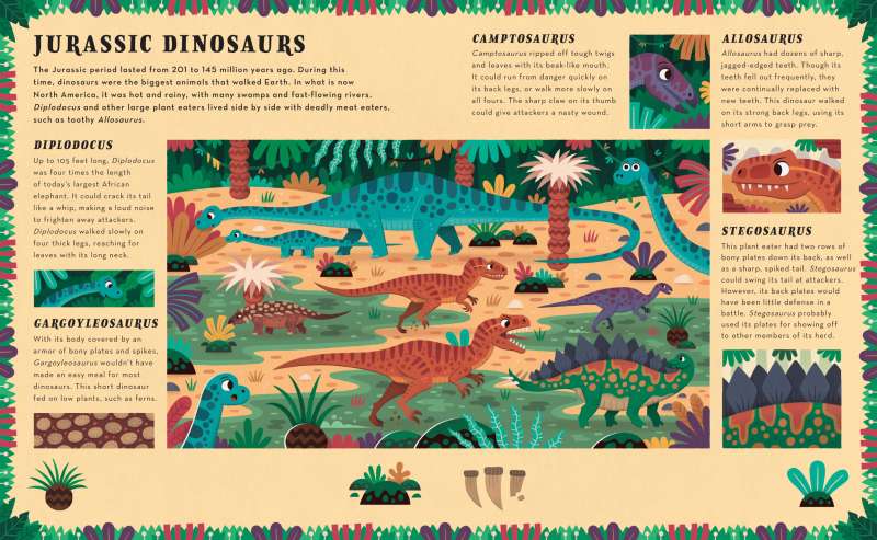 From the Triassic to the Cretaceous, explore great prehistoric landscapes with fascinating facts and bright illustrations in Dig and Discover: Dinosaurs. Kids will learn about fierce dinosaurs, flying reptiles, giant plant eaters, and more while uncovering fossils with the included scraper tool on five scratch-off dinosaur dig scenes. Simply scratch away the printed colored layer to reveal the hidden dinosaur fossils waiting underneath. With interesting facts and colorful archaeological digs to uncover, kids will travel back in time to learn about prehistoric creatures in this hands-on book.