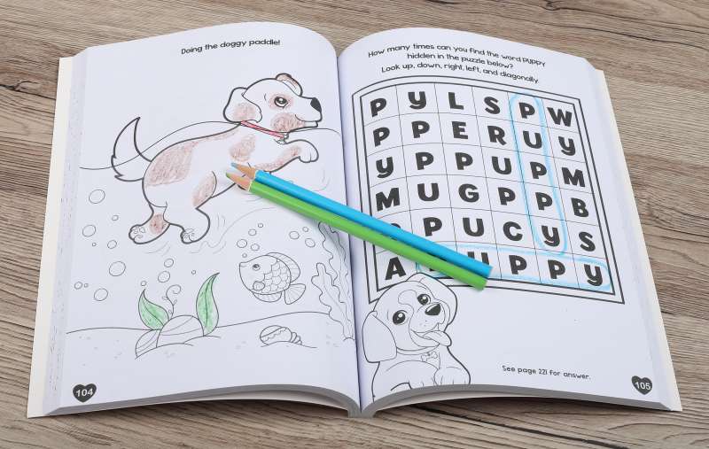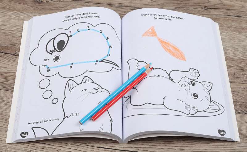 Packed with playful puppies, cuddling kittens, busy baby farm animals, and unique unicorns, My Big Book of Cute Coloring is as cute as it gets. This 224-page paperback book is chock-full of pages to color, mazes, matching games, spot the difference, drawing, and other activities. More than 50 full-color stickers are included, too!
