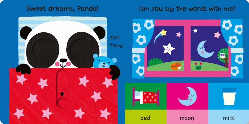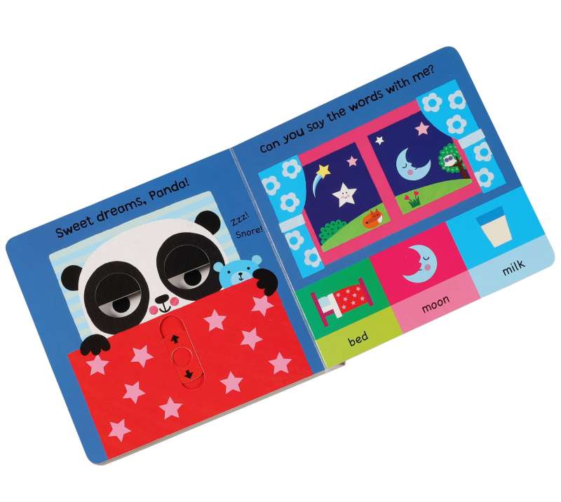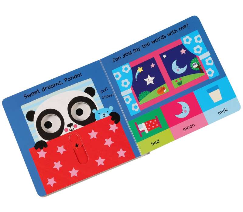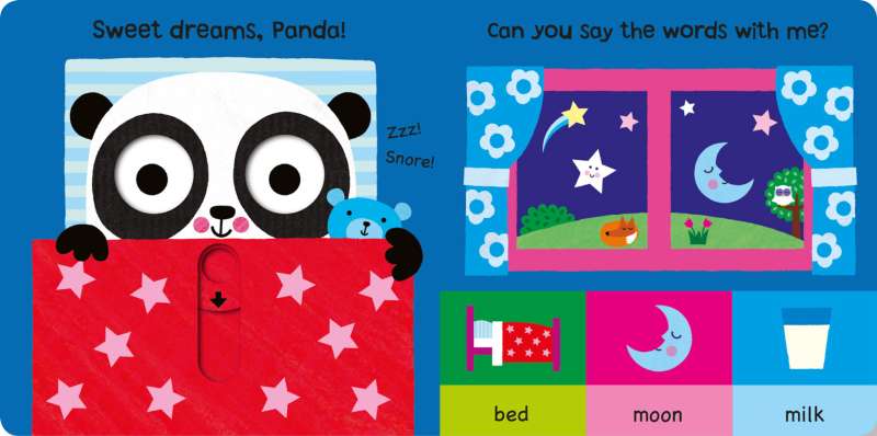 Young children will delight in Panda’s interactive googly eyes as they learn simple first words on each page. Your little one can also help Panda close his eyes to sleep with the slider at the end, making this a perfect bedtime book!