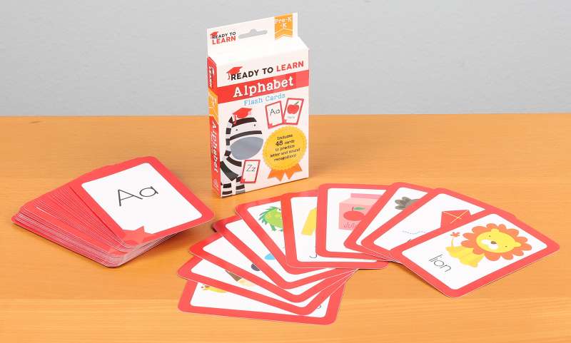 Flash cards are a great way to memorize small amounts of information, and Ready to Learn: Pre-K–K Alphabet Flash Cards help 3- to 6-year-olds master their ABCs. This collection includes 48 illustrated flash cards, all featuring a letter from the alphabet on one side, and a colorfully illustrated word that starts with that letter on the reverse. The repetition of flash cards forms a connection between letters and images, which can build school-ready reading skills.