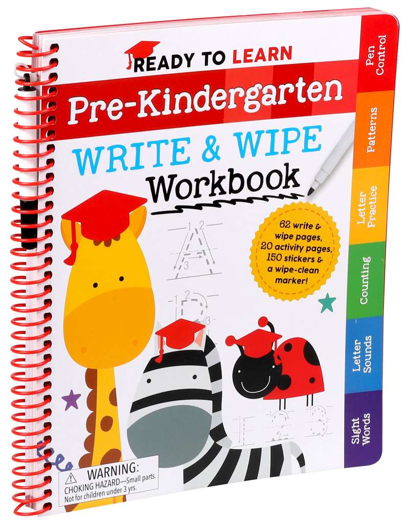 Ready to Learn: Write and Wipe Pre-Kindergarten Workbook builds the foundational skills in reading, writing, and math that children ages 3 to 5 will need when they arrive in kindergarten. Pre-kindergarteners can practice number and letter tracing, explore shapes and patterns, and develop fine motor skills in exercises that adhere to the Common Core State Standards for the pre-K level. Kids can complete and redo the skill-building activities as often as they like using the included dry-erase pen. Simply wipe clean and do it all over again.