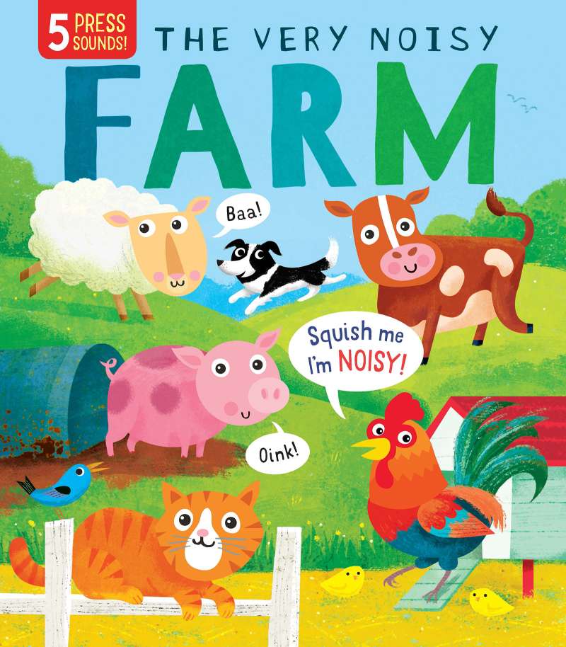 The Very Noisy Farm is a hilarious book with five squishy silicone animal heads to press and noisy sounds to hear at the turn of every page. With colorful illustrations and a fun rhyming story, it will delight children and grown-ups alike.