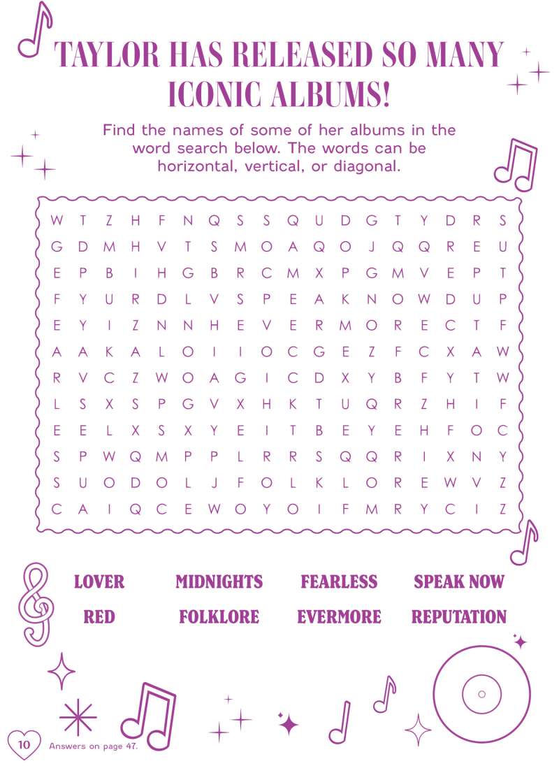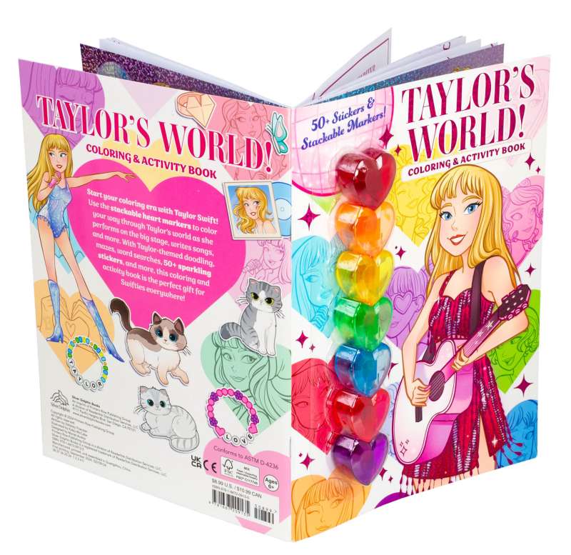 Are you ready for it? Start your coloring era with Taylor Swift! Use the stackable heart marker to color your way through Taylor’s world as she performs on the big stage, writes songs, and spends time with her cats. The stackable marker features six stunning colors you can use to make countless Swiftie masterpieces. With Taylor-themed doodling, mazes, word searches, 50+ sparkling foil stickers, and more, this coloring-and-activity book is the perfect gift for Swifties everywhere!