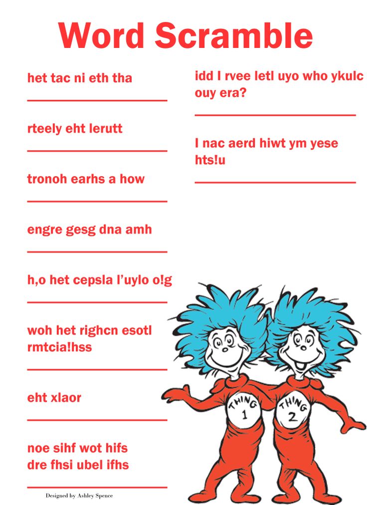 - Include fun games like Name That Book where you have to figure out the real children’s book title. You can create your own “Name That Story” game, do a Seuss Word Scramble or a Children’s Classics Quiz.