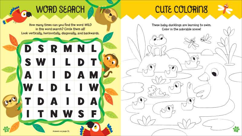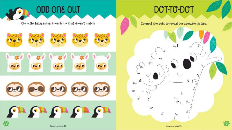 Adorable animals are everywhere in this super cute activity book! Turn the pages and make your way through coloring pages, mazes, doodles, and search-and-finds, all full of the cutest baby animals. With colorful illustrations and more than 85 puffy stickers to add to the pages, this book is perfect for animal lovers!