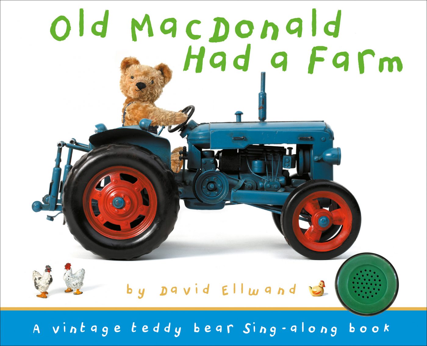 By pressing a button on the cover, little ones can listen to the classic children’s song “Old MacDonald Had a Farm” while they flip through the pages of this adorable book. Critically acclaimed photographer David Ellwand has created a sweet, whimsical world starring antique toys, including a lovable teddy bear and his farmyard friends. With an oink-oink here, and an oink-oink there, this cute book is a barnyard blast!