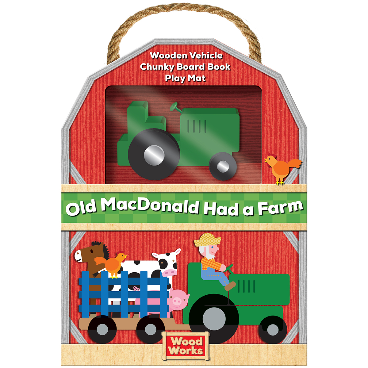 With a chunky board book, a wooden tractor, and a playmat, little ones can read and play along as they go through the farm and meet cows, ducks, horses, and more!