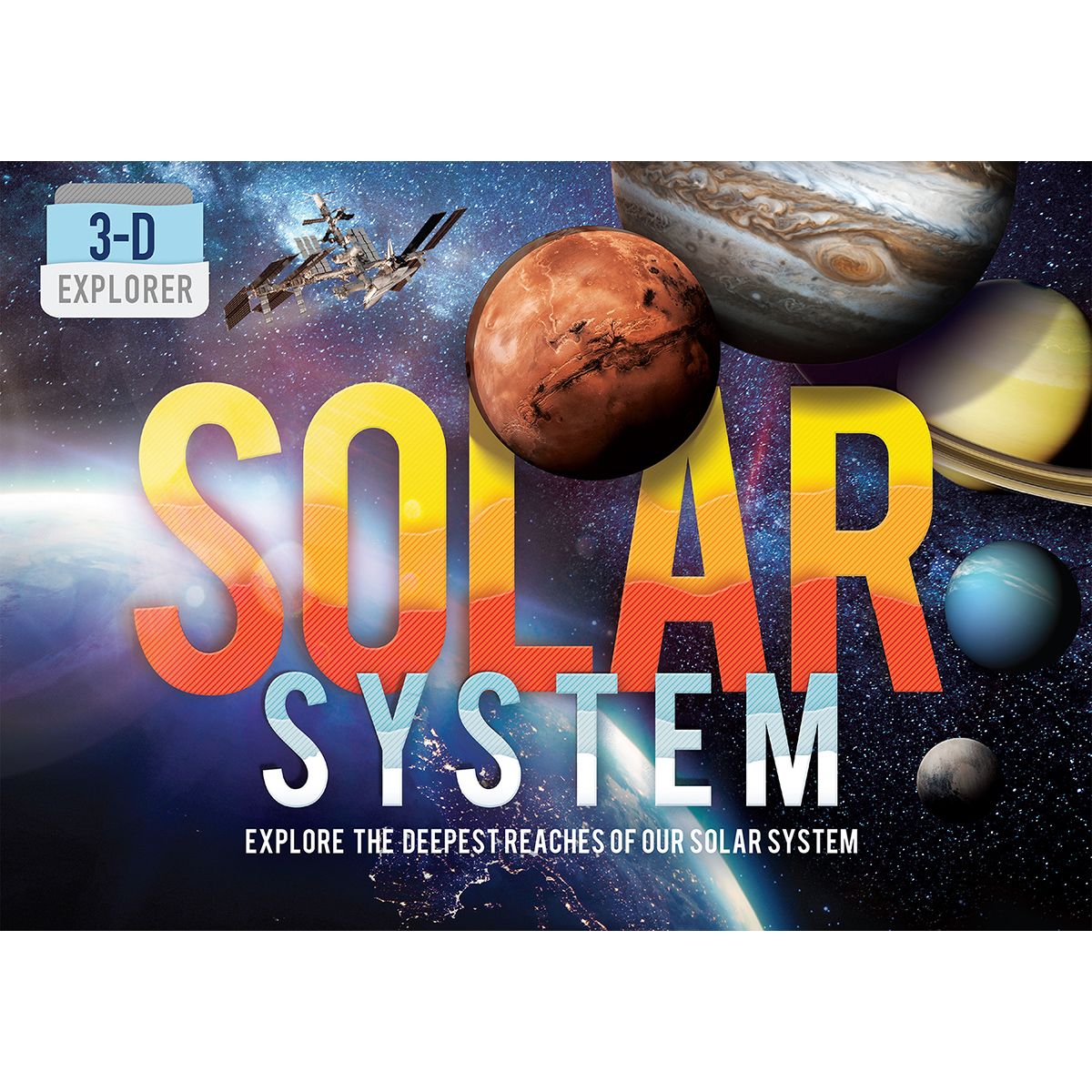 Filled with engaging text, dazzling images, and diagrams throughout, 3-D Explorer: Solar System features five out-of-this-world pop-up scenes with cool metallic effects that really bring the secrets of space to life. Young astronomers will explore each of the solar system's regions in detail; discover the planets, comets, and asteroids; experience the historic Apollo 11 lunar landing; hitch a ride on the International Space Station; and even traverse the dusty red surface of Mars.