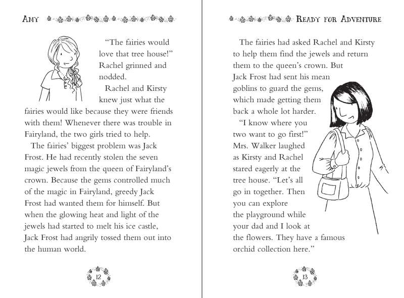 One day, best friends Kirsty and Rachel explore the treehouse behind Tippington Manor and sense fairy magic at work! The girls have been searching for the Jewel Fairies’ missing jewels that were stolen by Jack Frost and are excited to meet Amy the Amethyst Fairy. Her missing jewel makes things disappear—including the rope bridges around the treehouse! Kirsty and Rachel must find a way to get the jewel back from Jack Frost’s goblins before it’s too late. With age-appropriate text, a magical story, and illustrations throughout, this chapter book is perfect for kids who are starting to read independently.